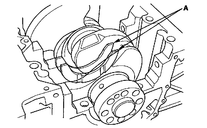 18. Line up the mark (A) on the connecting rod and cap, then install the cap.