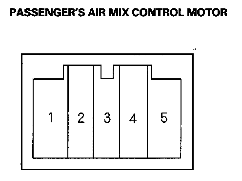 2. Connect battery power to the No. 1 terminal of the passenger's air mix control motor, and ground the No. 2 terminal; the passenger's air mix control motor should run, and stop at Max Hot. If it doesn't, reverse the connections; the passenger's air mix control motor should run, and stop at Max Cool. When the passenger's air mix control motor stops running, disconnect the battery power immediately.