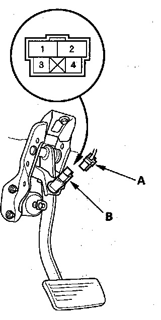 Brake Pedal Position Switch Test1. Disconnect the 4P connector (A) from the brake pedal position switch (B).
