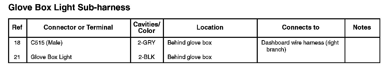 Glove Box Light Sub-harness: