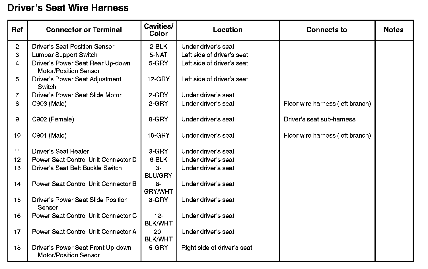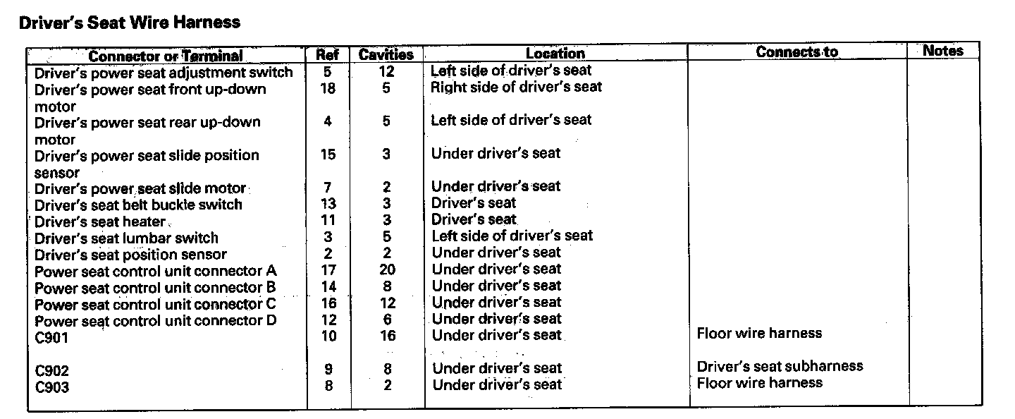 Driver's Seat Wire Harness: