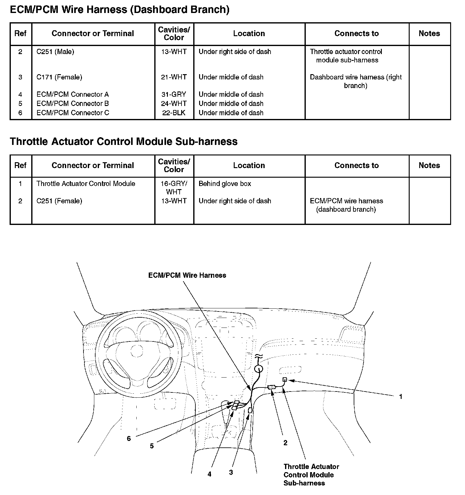 ECM/PCM Wire Harness (Dashboard Branch)/Throttle Actuator Control Module Sub-harness: