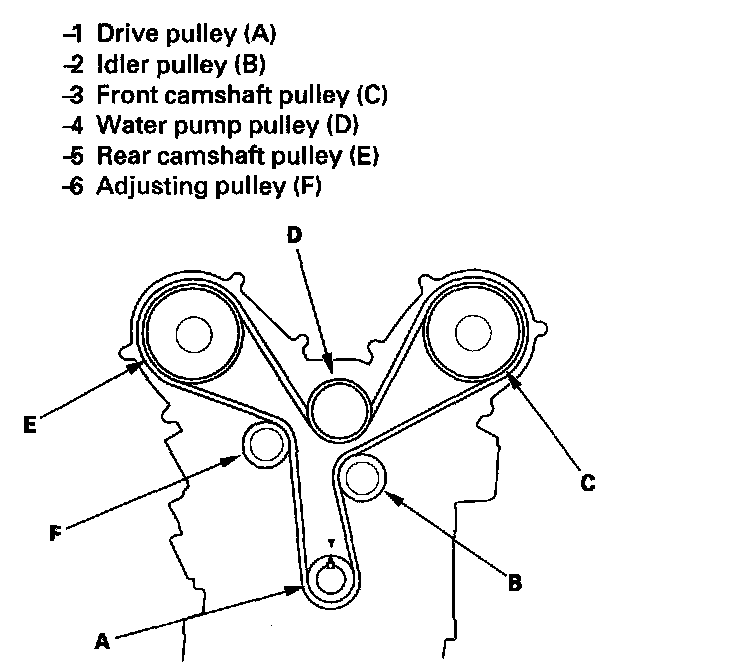 Timing Belt InstallationNOTE: The following procedure is for installing a used timing belt. If you are installing a new belt, refer to the timing belt replacement procedure.