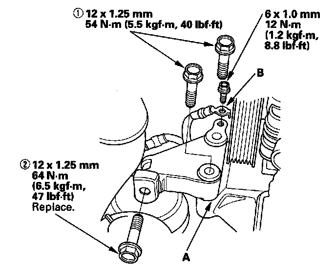 17. Install the upper half of the side engine mount bracket (A), and tighten the bolts in the numbered sequence shown.