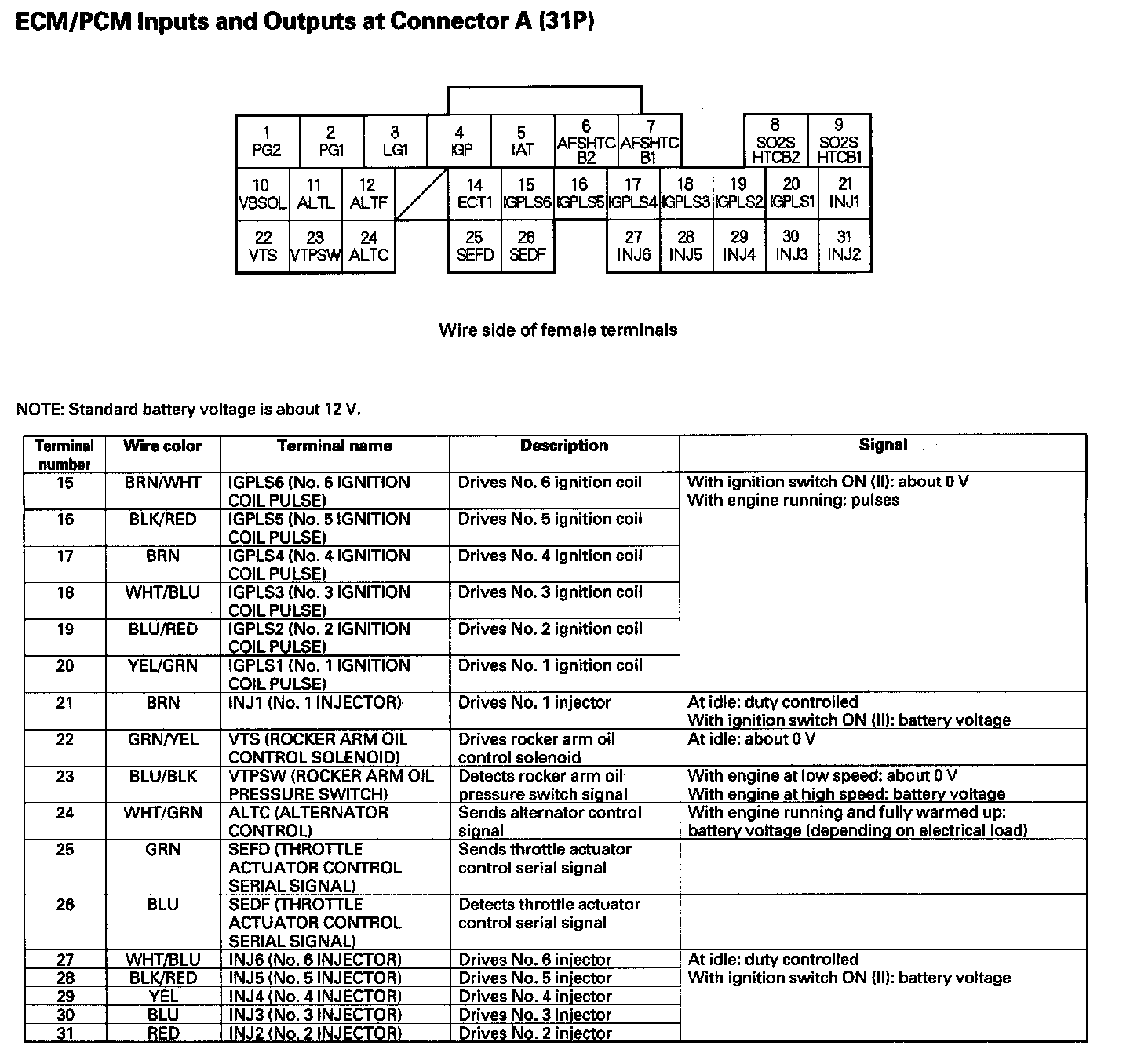 ECM/PCM Inputs And Outputs At Connector A (31P) Part 1: