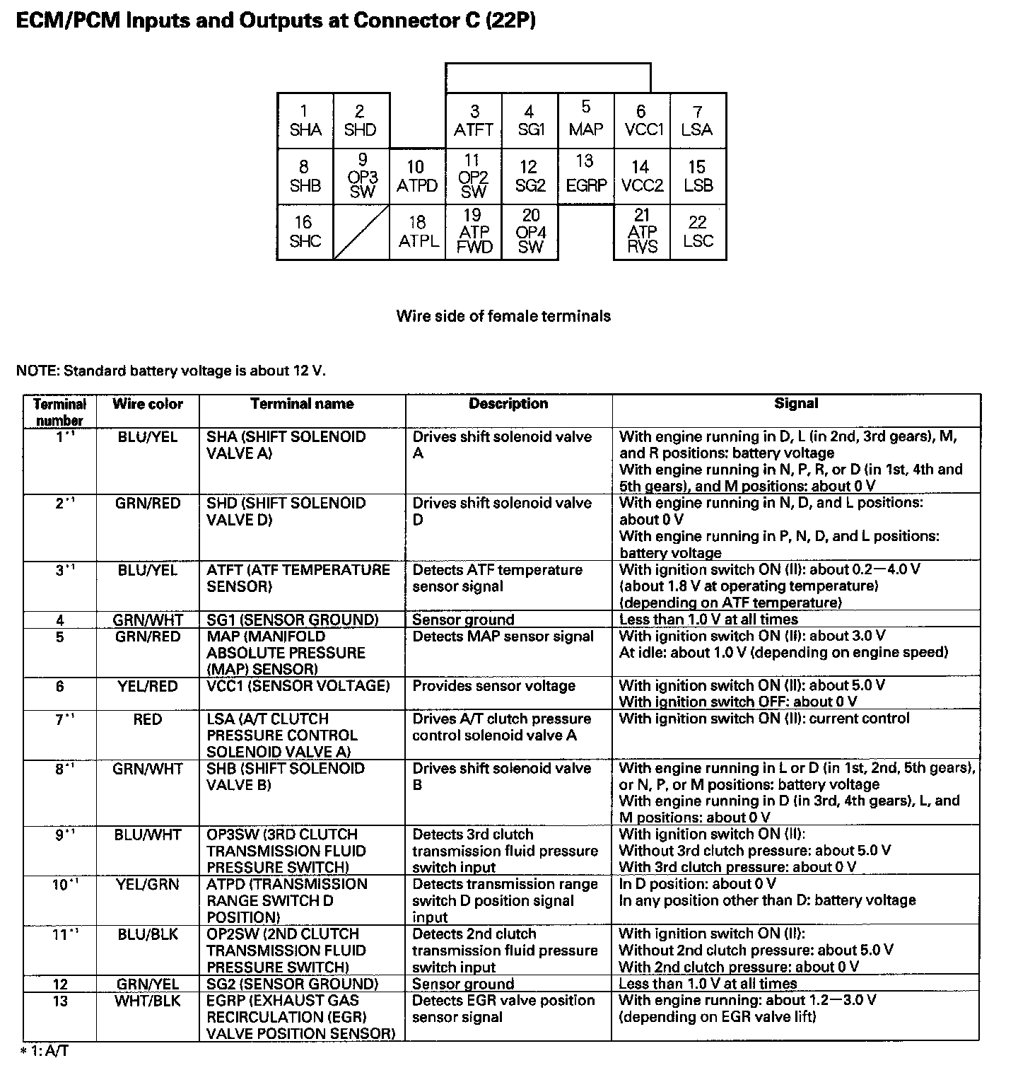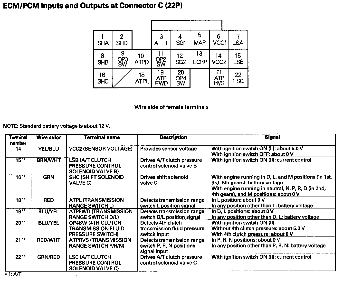 ECM/PCM Inputs And Outputs At Connector C (22P) Part 1: