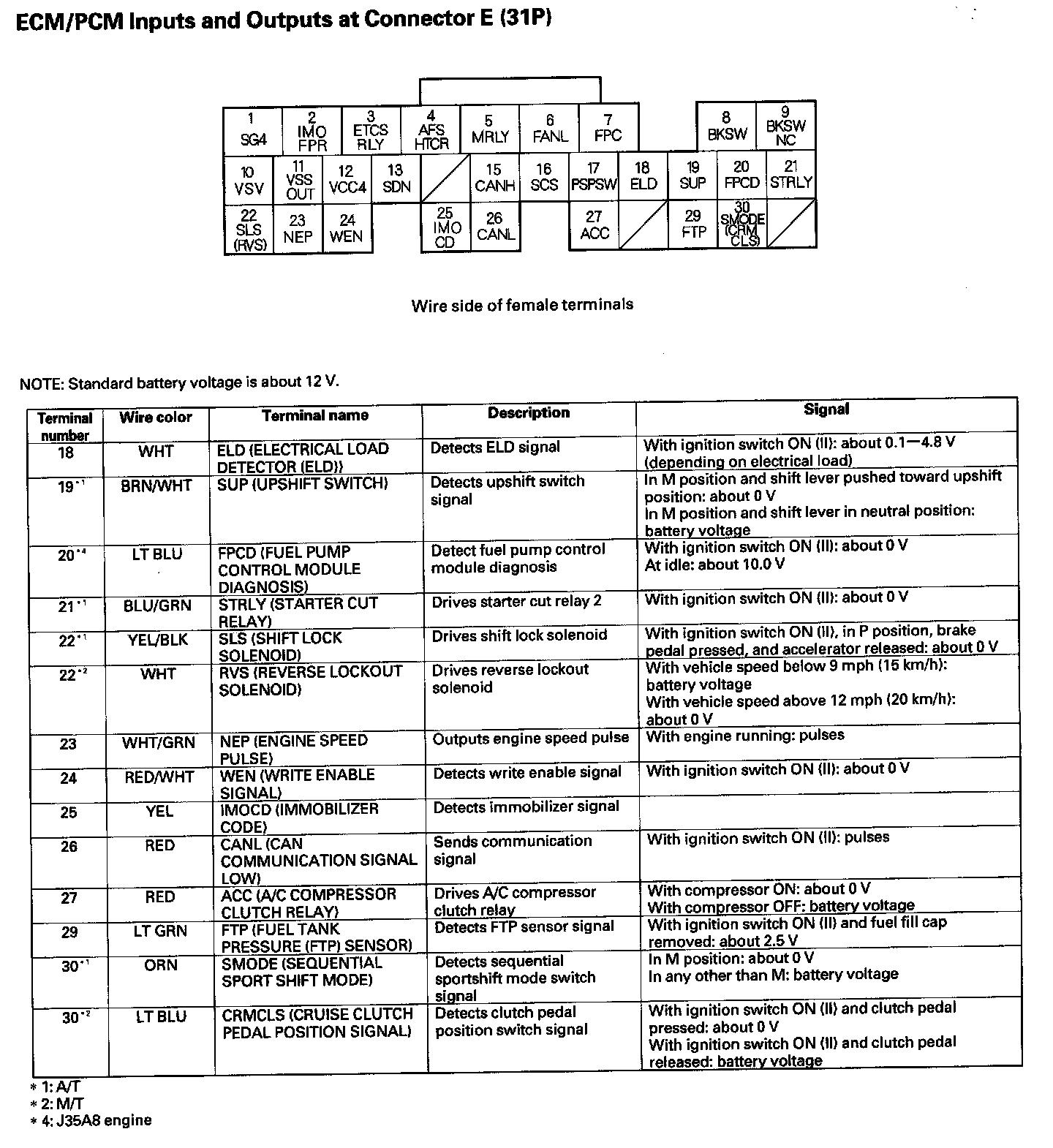 ECM/PCM Inputs And Outputs At Connector E (31P) Part 2: