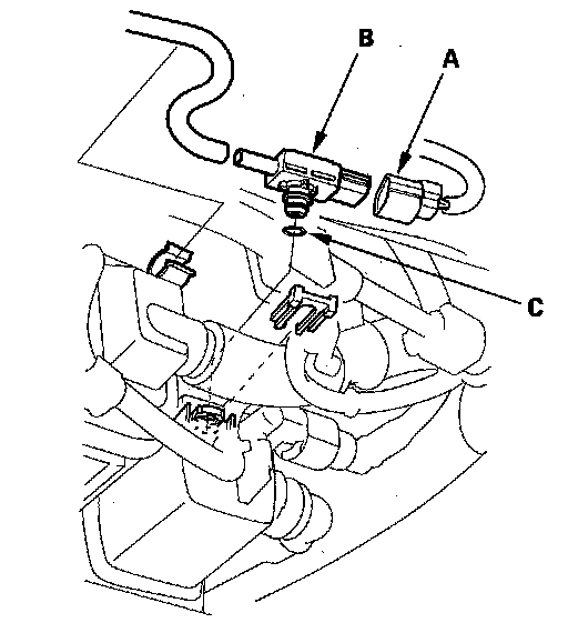 Install the parts in the reverse order of removal with a new O-ring (C).