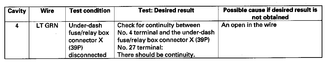 4. With the connector still disconnected, make these input tests at the connector.