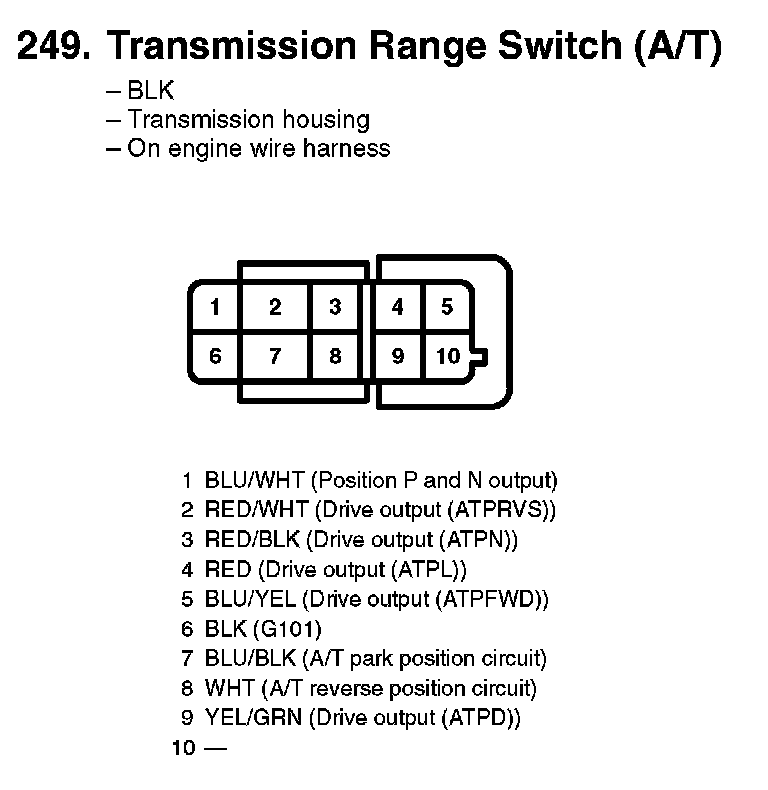 249. Transmission Range Switch (A/T):