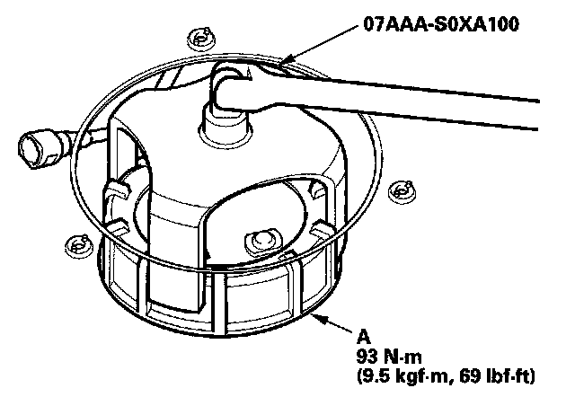 NOTE: To avoid a fuel leak, check the base gasket, visually or by hand, to make sure it is not pinched.