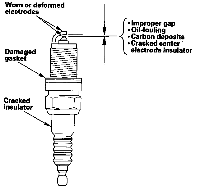 1. Remove the spark plugs, and inspect the electrodes and the ceramic insulator.