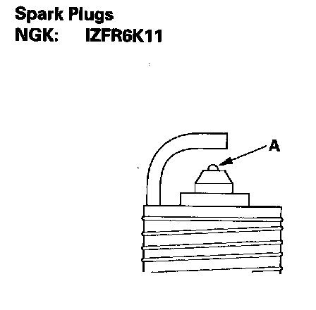 3. Do not adjust the gap (A) of iridium tip plugs, replace the spark plug if the gap is out of specification.