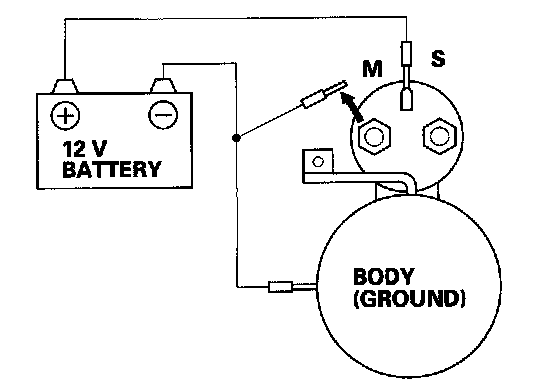 4. Disconnect the battery from the M terminal. If the pinion does not retract, the hold-in coil of the solenoid is working properly.