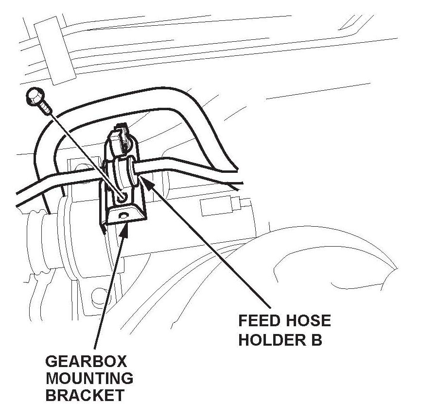 16. Remove feed hose holder B from the steering gearbox mounting bracket, located on the passengers side (one bolt).