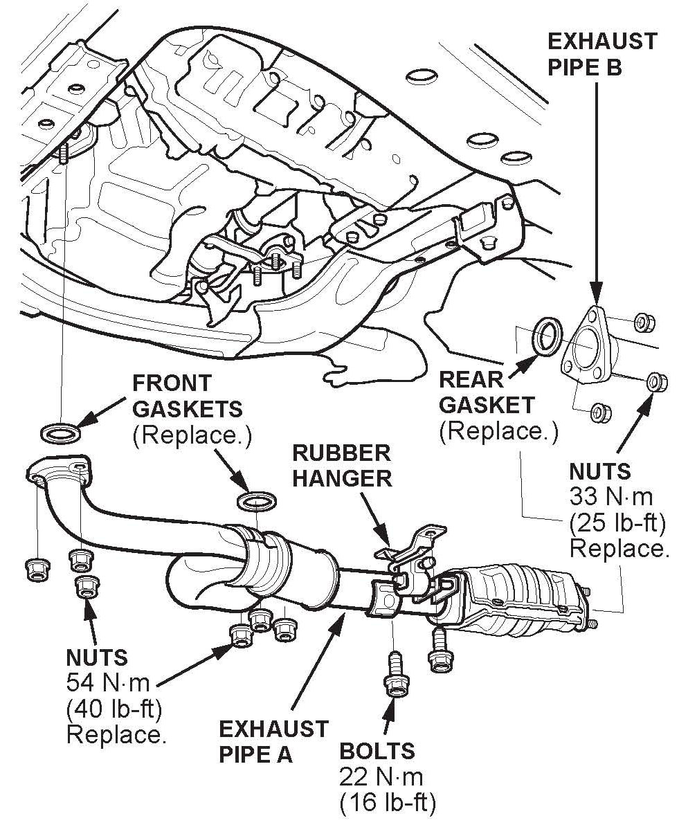 42. Reattach exhaust pipe A and the TWC using new gaskets and self-locking nuts. Use the torque specs in step 17.