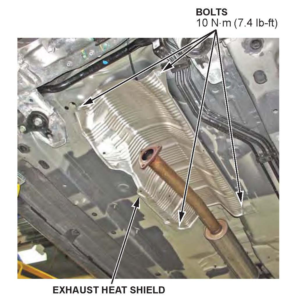 41. Reinstall the exhaust heat shield, and torque its bolts to 10 N.m (7.4 lb-ft).