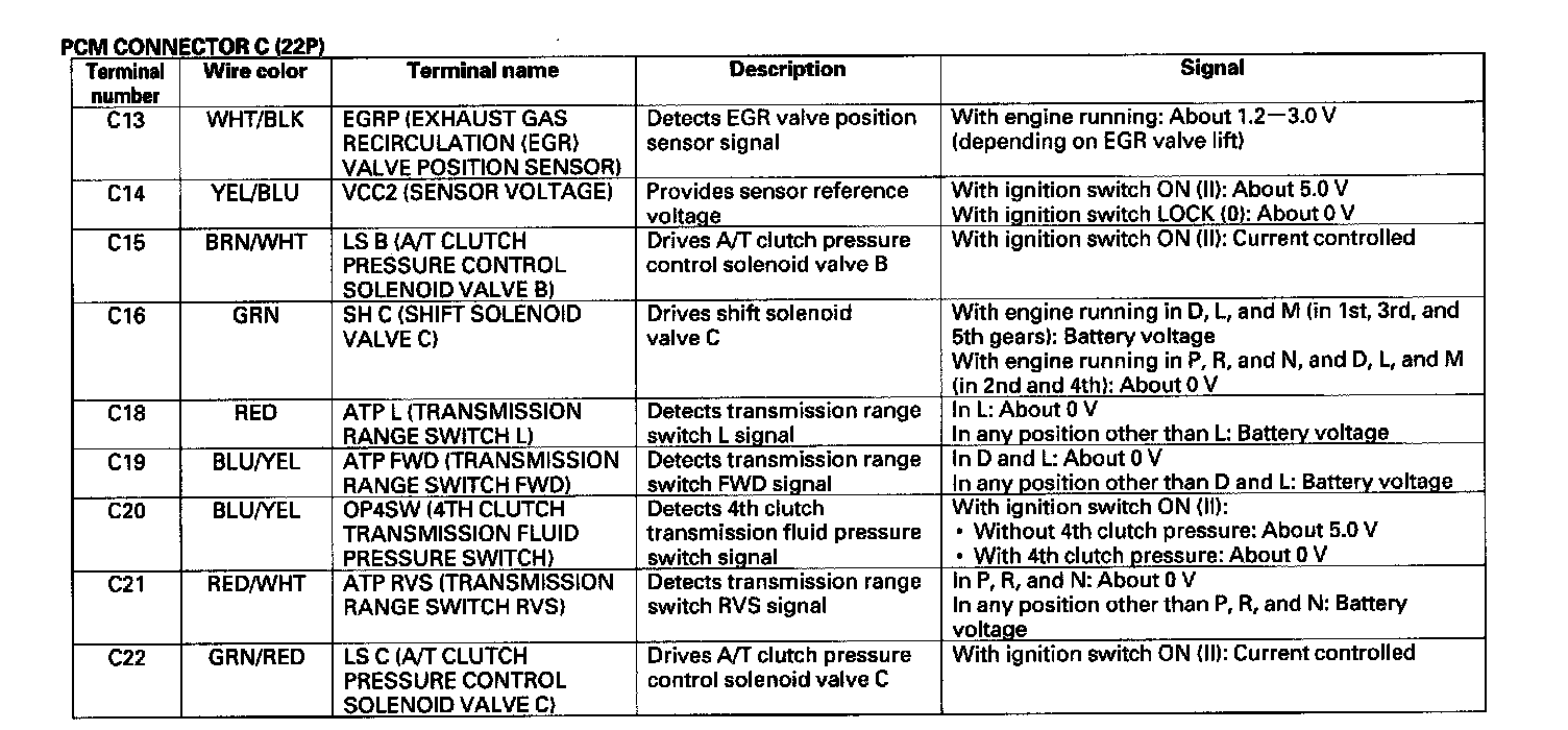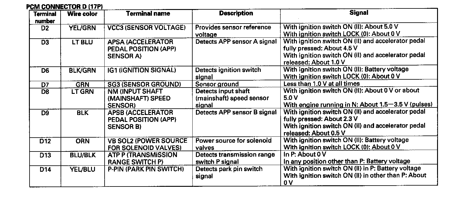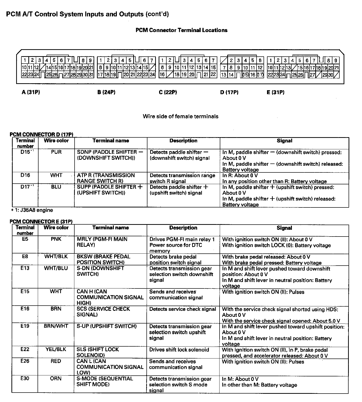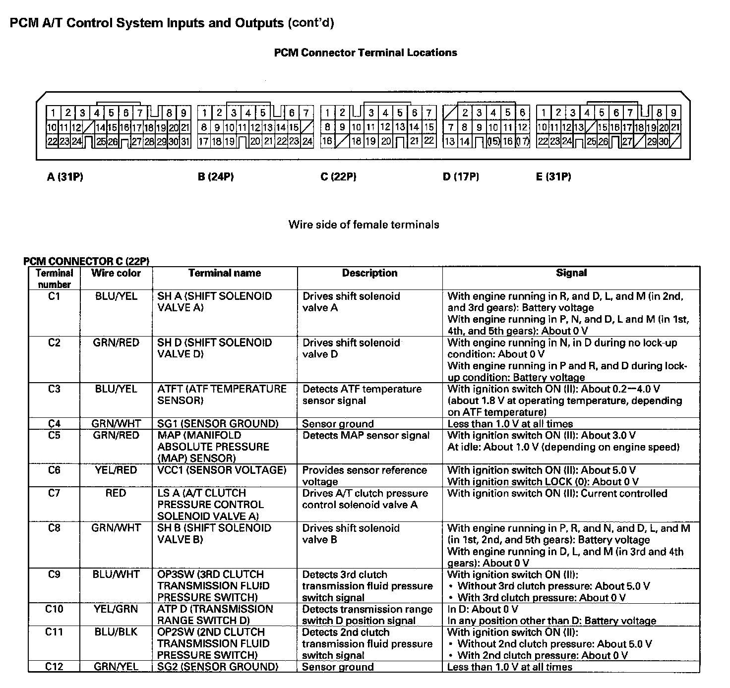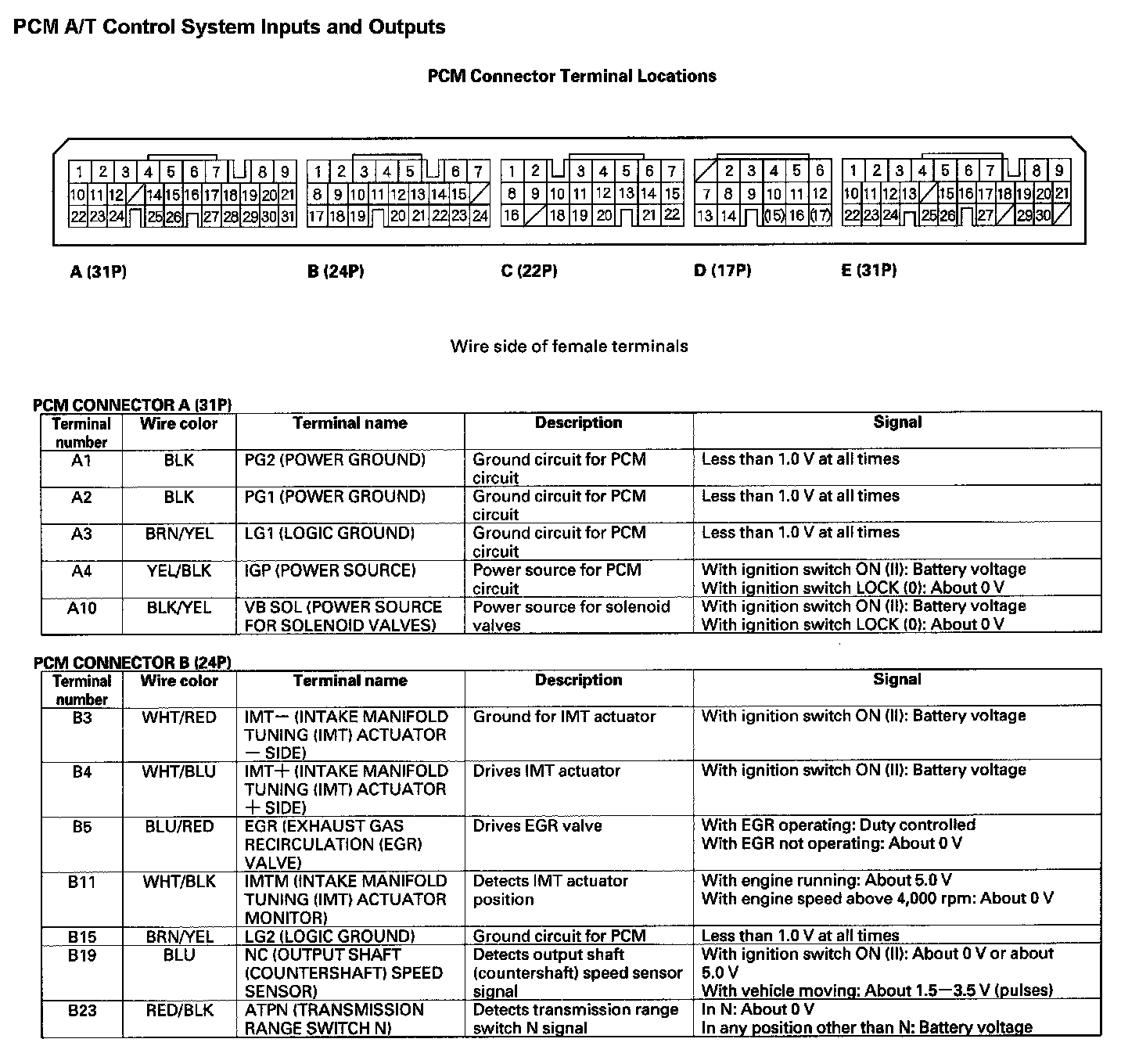 PCM A/T Control System Inputs and Outputs