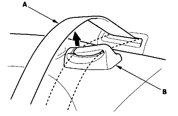 5. Release the center seat belt (A) from the guide (B).