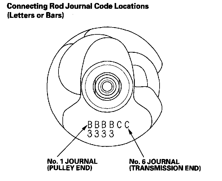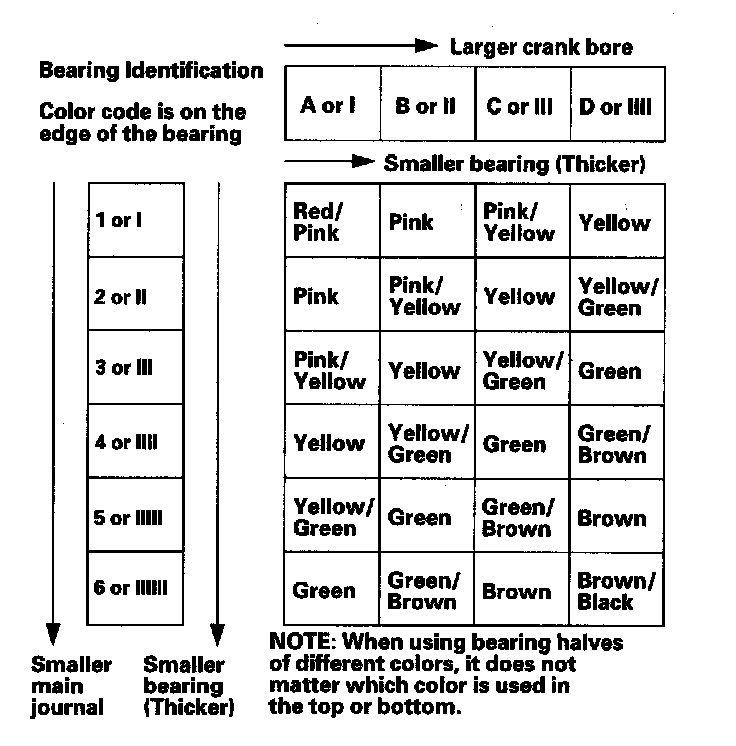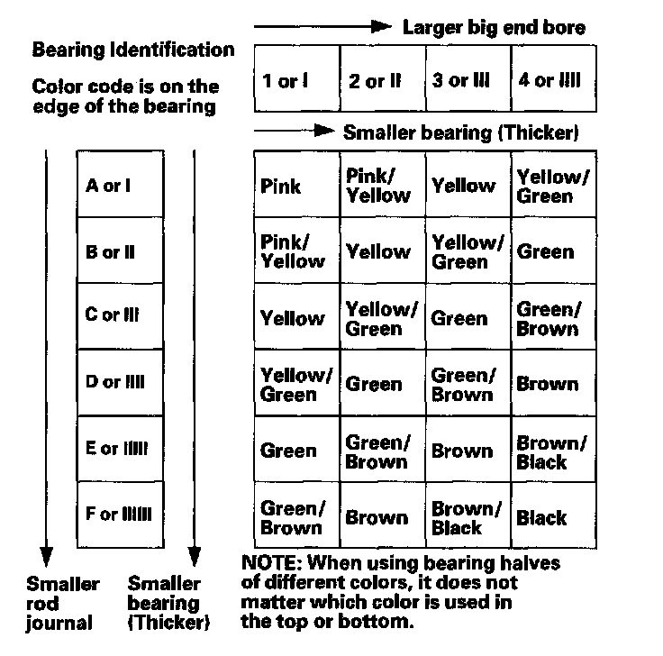 Each connecting rod falls into one of four tolerance ranges from 0 to 0.024 mm (0.0009 in.), in 0.006 mm (0.0002 in.) increments, depending on the size of its big end bore.