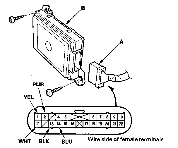 7. Reconnect the 22P connector to the HandsFreeLink control unit, and connector X (39P) to the under-dash fuse/relay box.