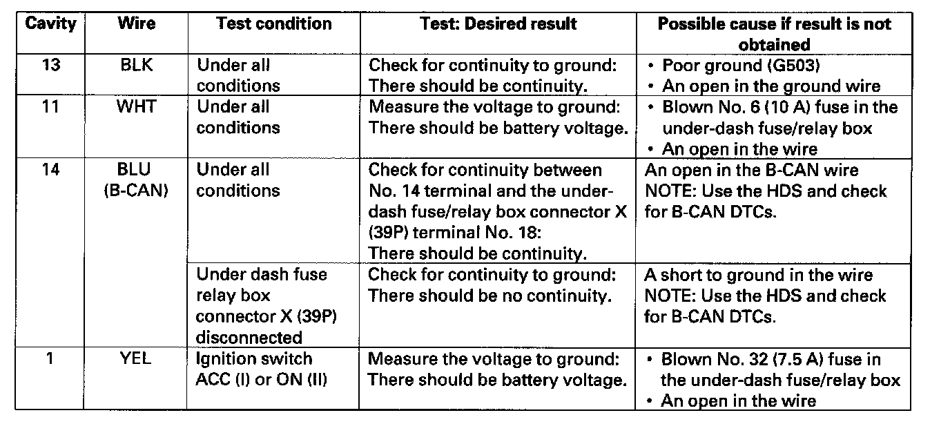Control Unit Input Test/ReplacementNOTE: Before testing, troubleshoot the multiplex integrated control system using B-CAN System Diagnosis Test Mode A.