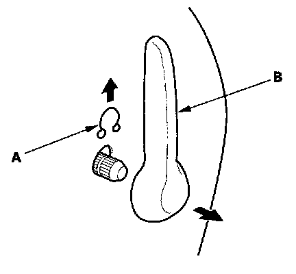 6. Driver's 8-way power seat: Remove the clip (A), then remove the lumbar support handle (B).