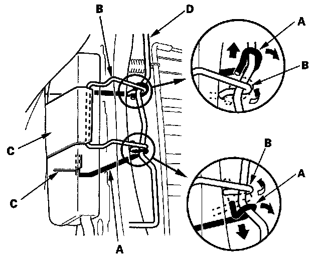 - Replace any clips (A) you removed with new ones. Install them with commercially available upholstery ring pliers (B).