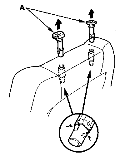 11. Pull out the head restraint guides (A) while pinching the end of the guides, and remove them.