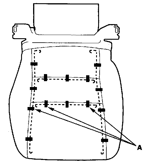 13. Pull back the edge of the seat-back cover all the way around, and release the clips (A), then remove the seat-back cover.