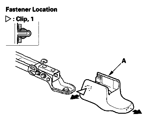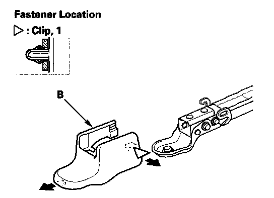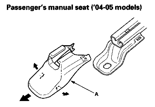 5. '06-08 models passenger's: Slide the seat all the way forward, detach the clips, and remove the right outer cover (A) and the left inner cover (B) from the back of the seat tracks.