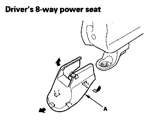 3. Slide the seat all the way forward, then remove the seat track end covers (A) from the back of both seat tracks.