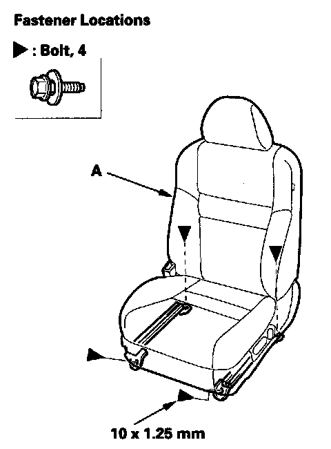 8. Remove the bolts securing the front seat (A).