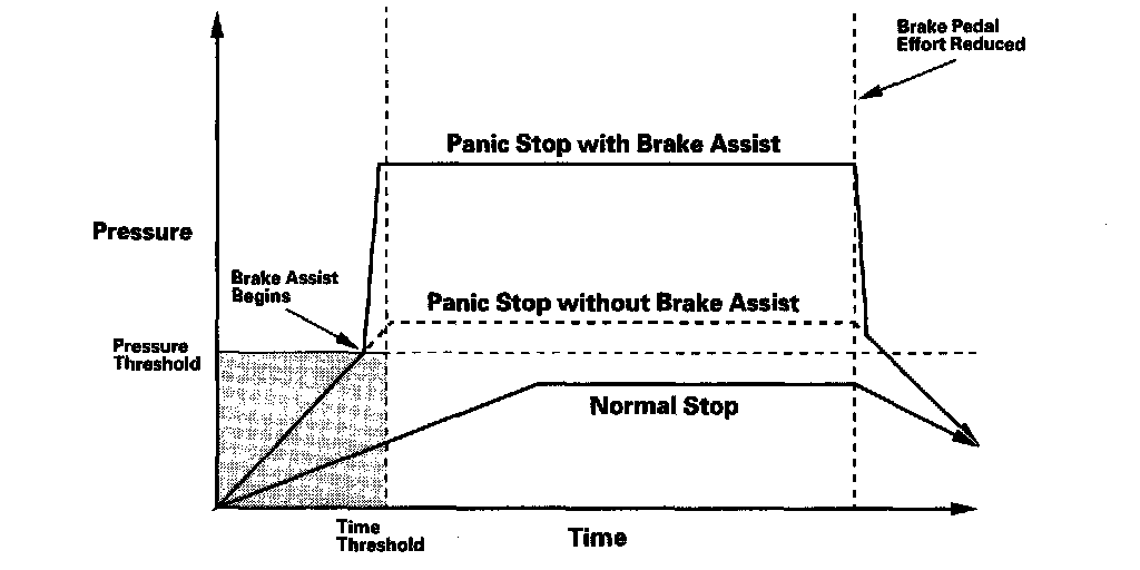 During normal braking conditions, brake assist does not affect brake system pressure.