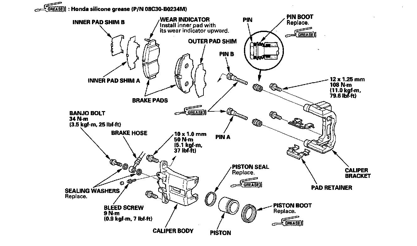 ^ Make sure no grease or oil gets on the brake discs or pads.
