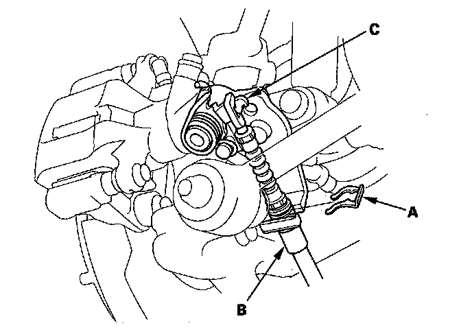 3. Disconnect the parking brake cable from the lever (C).