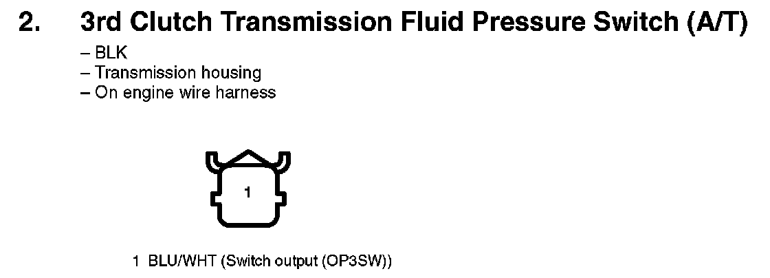 2. 3rd Clutch Transmission Fluid Pressure Switch (A/T):