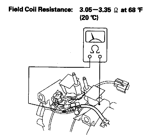 5. Check resistance of the field coil. If resistance is not within specifications, replace the field coil.