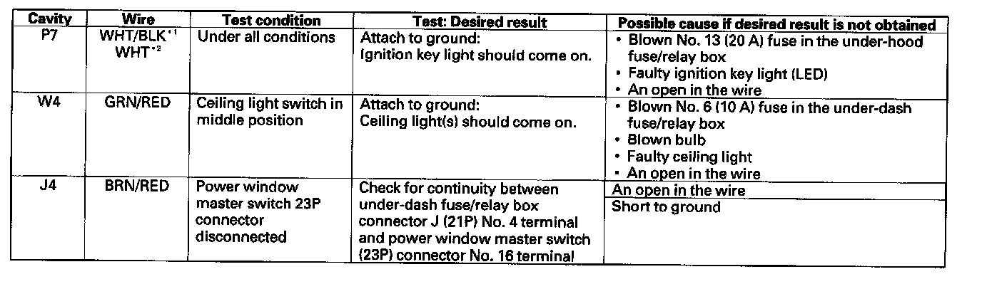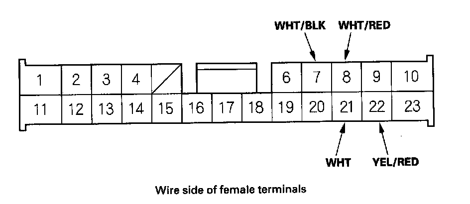 5. Reconnect the connectors to the under-dash fuse/relay box, turn the ignition switch ON (II), and make these input tests at the appropriate connectors on the under-dash fuse/relay box.