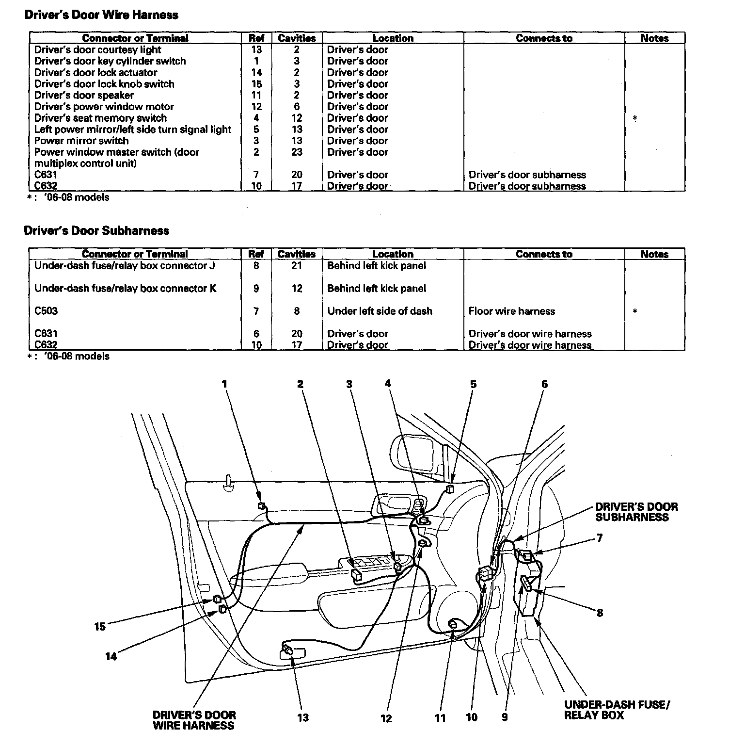 Driver's Door Wire Harness/Driver's Door Sub-harness: