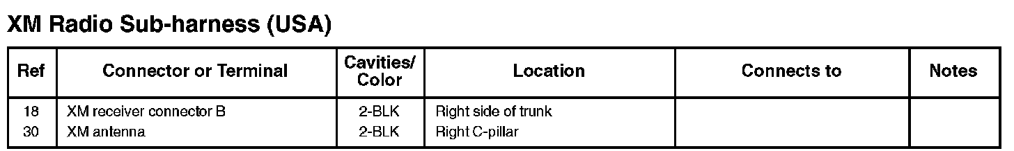 XM Radio Sub-harness (USA):