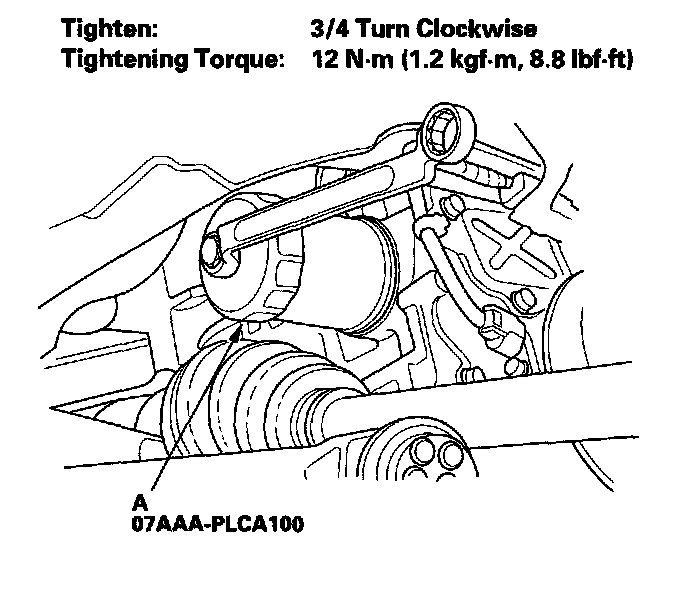 4. After the rubber seal seats, tighten the oil filter clockwise with the oil filter wrench (A).