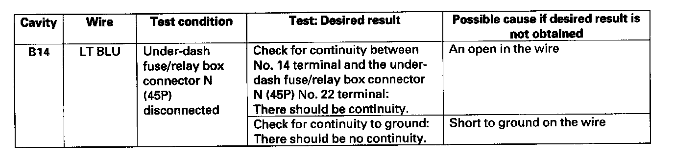 4. Reconnect the connector to the audio-HVAC display panel, and make these input tests at the connector.