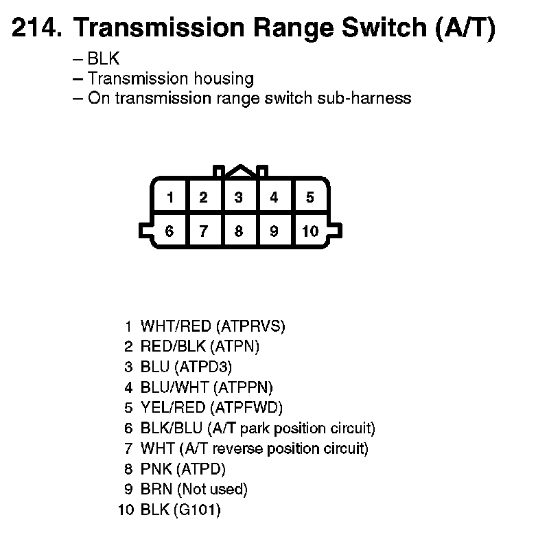 214. Transmission Range Switch (A/T):
