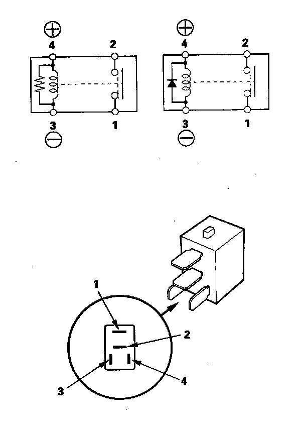 - There should be continuity between the No. 1 and No. 2 terminals when battery positive terminal is connected to the No. 4 terminal, and battery negative terminal is connected to the No. 3 terminal.