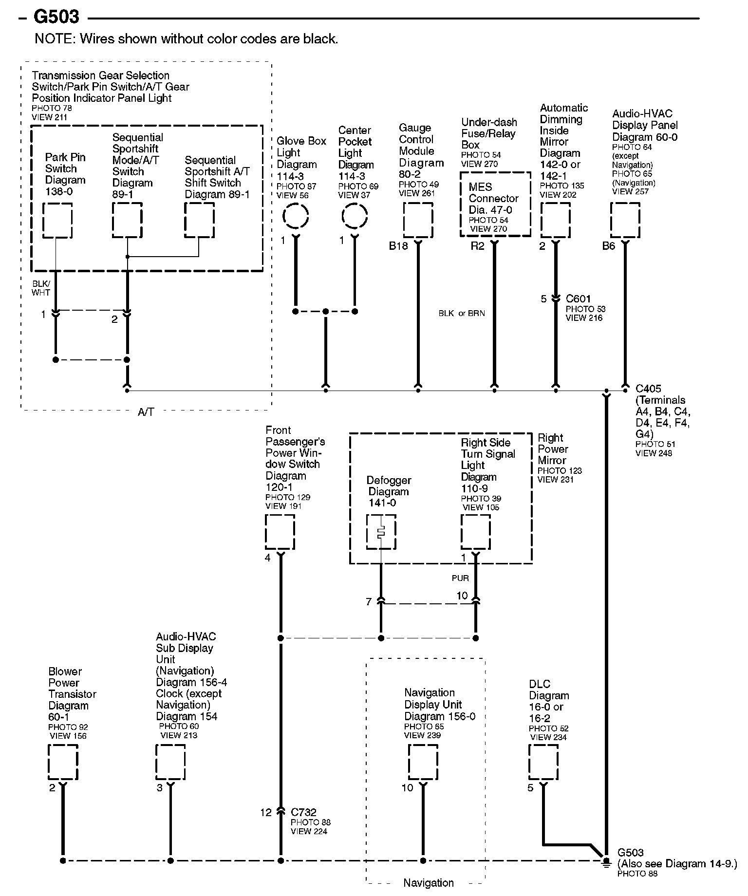 Connector Views: Connector terminal views (references to VIEWS) referred to within these diagrams can be found at Connector Views by View Number. Connector Views By View Number