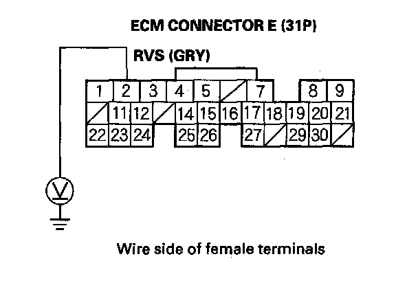 17. Measure the voltage between ECM connector E2 and body ground.