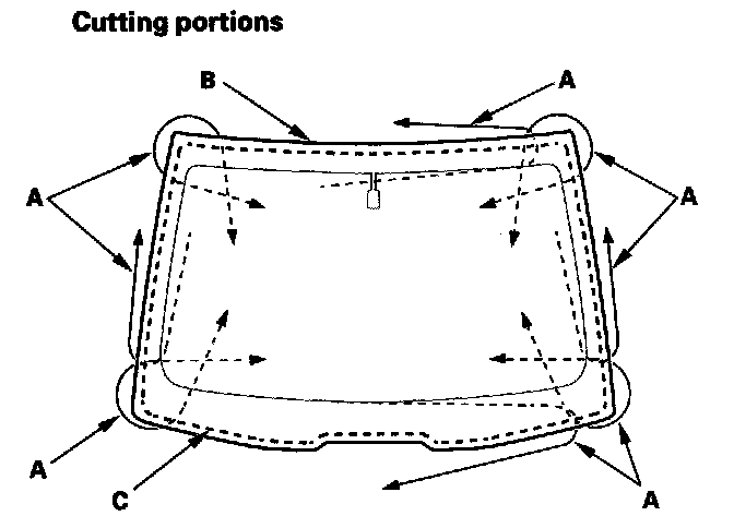 - When replacing a broken windshield, a commercially available windshield cutter can be efficiently used for cutting the adhesive. For details, follow the instructions of the tool manufacturer.