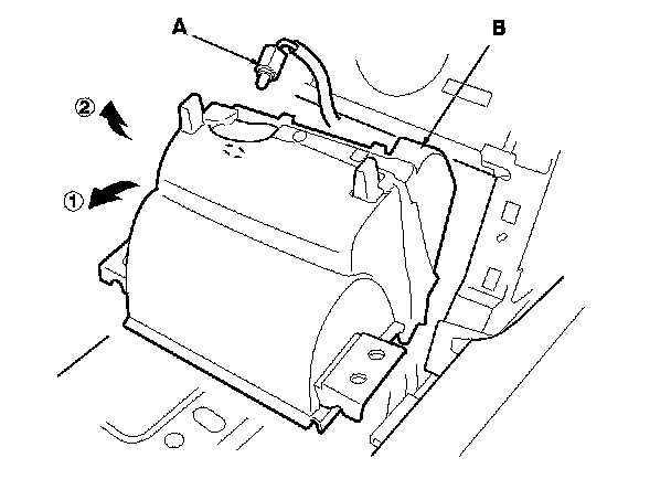 4. Gently pull out the ambient light bulb socket (A), then remove the utility pocket housing (B).