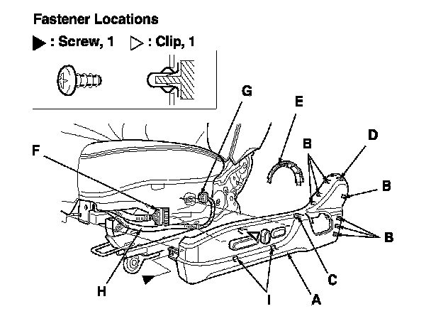 1. Remove the front seat. Front Seat Removal/Installation